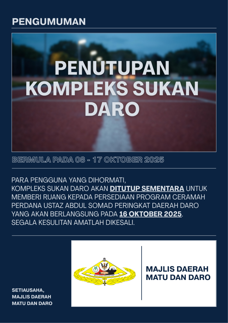 PENUTUPAN SEMENTARA KOMPLEKS SUKAN DARO